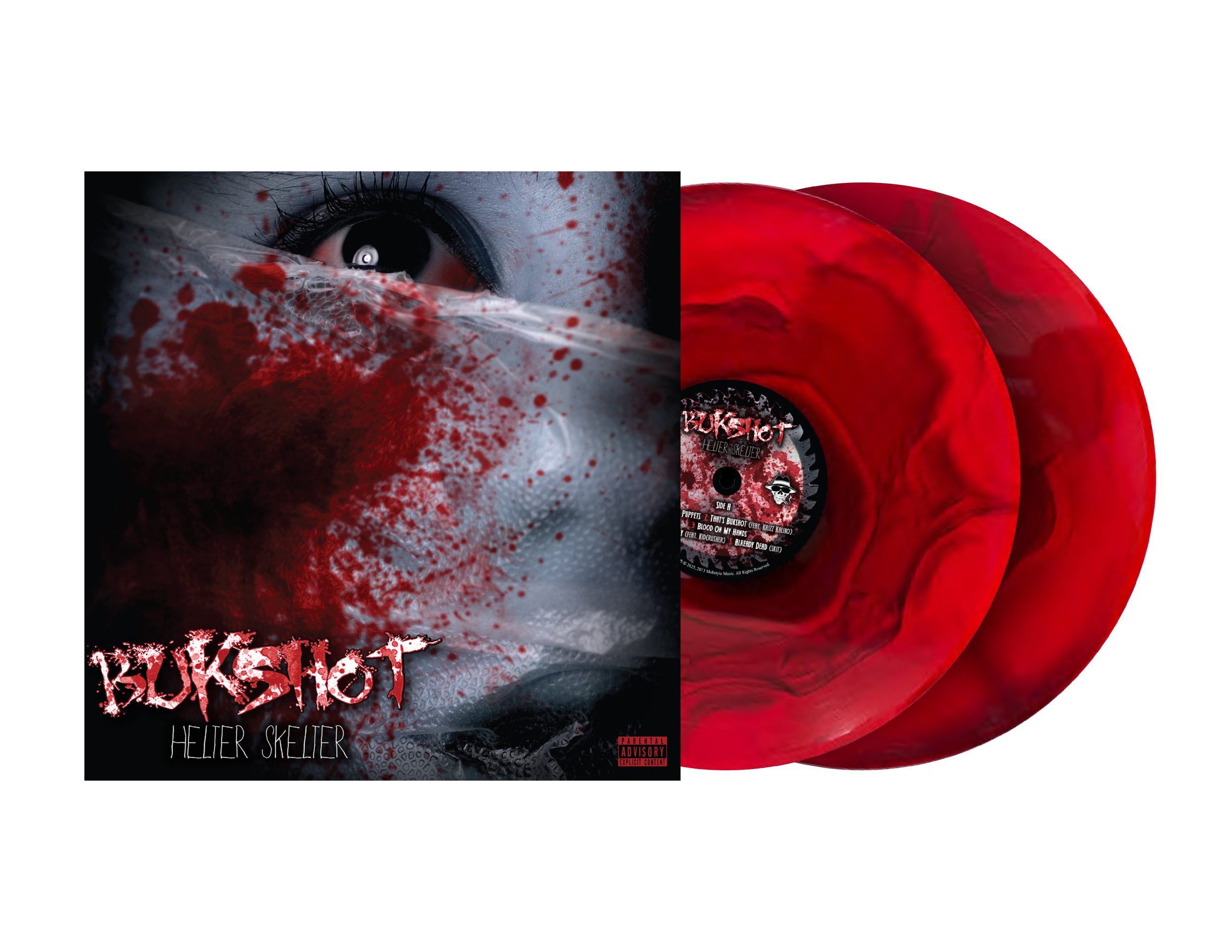 For those who have been following Bukshot on his wild journey, should know that every 3 years, SOMETHING very special happens – Helter Skelter! Well, this is the third year, and to celebrate Helter Skelter season, we have put together something very magical for you, the “Recurring Nightmare” bundle! We have decided to release the very first Helter Skelter album on a double vinyl album that features the all new “Blood Ripple” aesthetic! (Only 250 made!) We have also did a super limited run of 925 Silver “Hellion” dragon charms that feature gun metal accents (Only 25 made!). These charms were hand crafted by the legendary Alex Ekstra, who is the same person who has done all of our Mobstyle charms! These charms also come with a metal card Certificate Of Authenticity! This bundle also includes a Helter Skelter: Hellion cassette that features a “Blood Red” shell (Only 30 made!), and a super limited run of 12 “Jason Mask” CD singles that features photography from “Jason Mask” which was Bukshot’s very first music video! This exclusive CD is what makes this bundle so rare! Our most limited piece of audio we have ever released! And to top it off, we have included the brand new project “Bukshot: Night Of The Hellion” which is all brand new music inspired by Helter Skelter! The 12 lucky individuals who get this bundle, will actually be the first people to hear this new album! Night Of the Hellion is releasing at Mobstyle’s upcoming Halloween show, Hallowbleed 6, so as an added bonus, we are going to ship these bundles out before the show! All items are already in our warehouse except the vinyl itself, which is shipping this week, so as soon as the vinly arrives, your “Recurring Nightmare” bundle SHIPS OUT! I am not going to specify a time this bundle goes live on Monday, because every time we announce an actual time stamp, we have a thousand people on the Mob-Shop all at once, so all I can is pay attention, have a good lunch tomorrow, and good luck!
